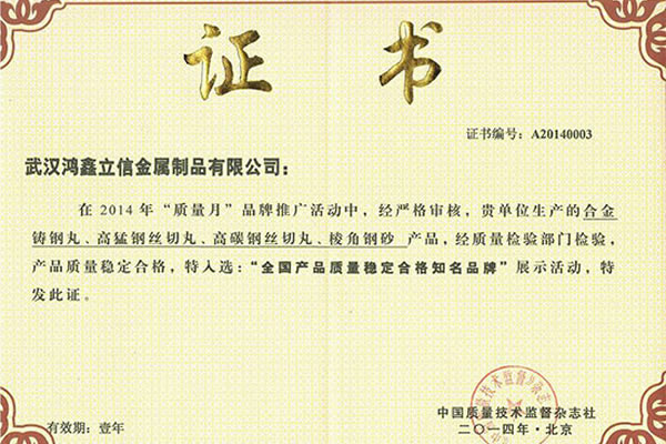 武漢鴻鑫立信金屬制品有限公司主要從事鋼丸、鋼絲切丸、鋼砂等除銹防腐耗材的生產(chǎn)和銷售。公司所有產(chǎn)品均通過(guò)ISO9001**質(zhì)量認(rèn)證,2014年更獲得了第三屆中國(guó)金屬磨料行業(yè)具有影響力品牌-華尊獎(jiǎng)。董事長(zhǎng)陳群芝女士從事行業(yè)17年來(lái)專注為客戶節(jié)約鋼丸消耗成本,2014年獲得了華尊獎(jiǎng)-中國(guó)品牌建設(shè)實(shí)踐百名創(chuàng)新很好企業(yè)家的榮譽(yù)。服務(wù)過(guò)的國(guó)家建設(shè)項(xiàng)目有:北京鳥(niǎo)巢體育館、遼寧號(hào)航母、杭州灣跨海大橋、南海軍艦、成都雙流**機(jī)場(chǎng)、南車集團(tuán)動(dòng)車檢測(cè)中心、武漢火車站、武漢天興洲大橋等,同時(shí)服務(wù)的行業(yè)囊括橋梁制造、船舶制造、汽車制造、火車車輛制造、大理石打磨、鑄件清砂、各種機(jī)械制造表面清理等。鴻鑫鋼丸,值得信賴。